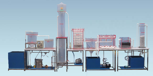 处理水量:5~10L/h、装置外形尺寸:5300mm×500mm×1400mm、电源 220V 功率1300W配置:有机玻璃混凝搅拌池1套、沉淀池1套、厌氧水解池1套、接触氧化池1套、竖流式中沉池1套、接触氧化池1套、竖流式沉淀池1套、齿轮减速电动机1只、电机1只、30L聚丙烯药箱1只、加药计量泵1台、LP-60低噪音气泵2台、水泵4台、转子流量计1只、排水槽2只、电控箱、漏电?;た?、按钮开关、连接管道和球阀、带移动轮子不锈钢台架等组成。