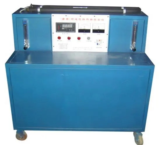 电热加热器水箱,套管换热器,不锈钢冷、热原水箱,玻璃转子流量计,顺、逆流管阀,加热由固体调压模块无级调节,由8路万能信号输入巡检仪显示的温度测试系统等。