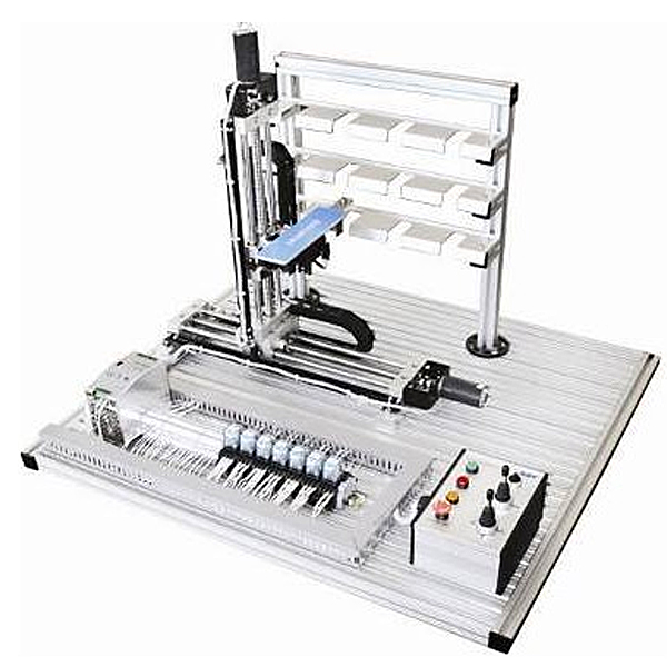 1、该装置由立体仓库主体、接口电路所组成。立体仓库主体由底盘、四层十二仓位库体、传动机械及电气控制等四部分组成。 2、模型的传动机械部分采用滚珠丝杠、滑轨、普通丝杠等机械元件组成,采用步进电机、直流电机作为拖动元件。