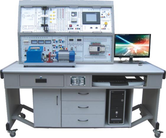 实训装置由控制屏、实训桌、三菱主机实训组件、实训模拟对象挂箱(含丰富的工业现场设备模拟实训对象)、实物对象、变频器挂箱、触摸屏挂箱、交流电机、接触器、总线单元、通信???、工控组态软件、仿真软件、电机导轨及测速机构等组成。