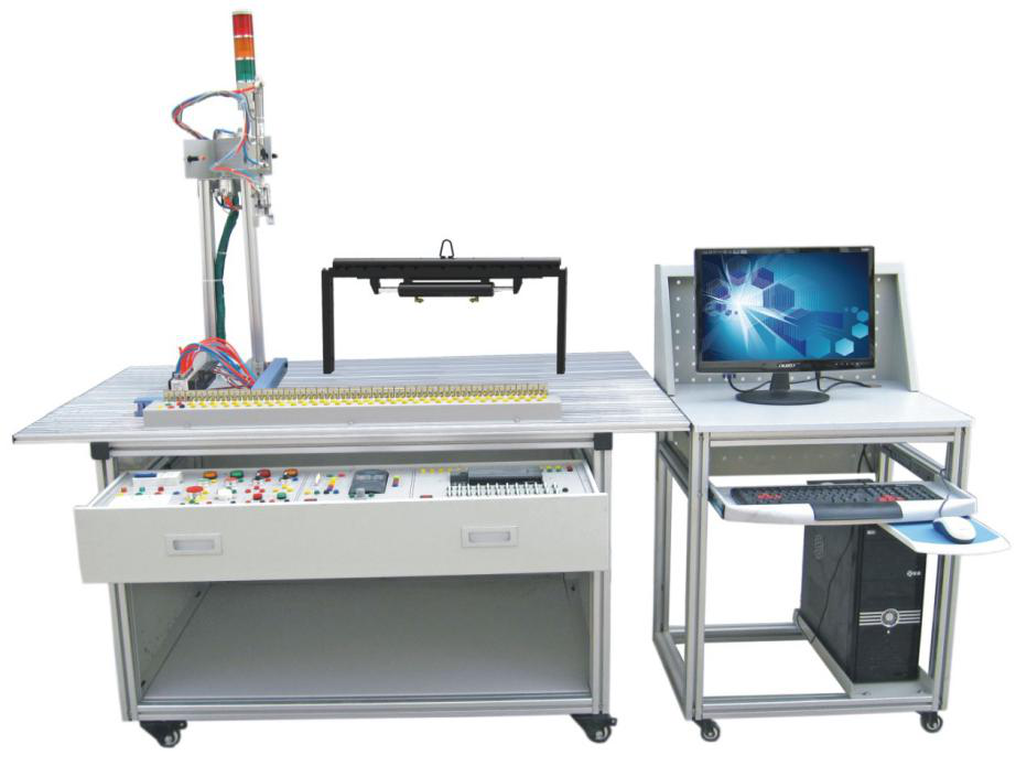 本循环送料系统实训装置是针对机电一体化实训教学的要求而研发的,它集PLC控制、位置控制、检测、工控组态技术于一体的实训教学装置,通过传感器信号采集、PLC编程、对交流电机、直流电机、送料小车进行较复杂的开关量控制、位置控制及时序逻辑控制,实现小车送料和装料、物料提升的生产流水线运动过程,完成循环送料的功能。适合于机械制造及自动化、机电一体化、自动化、电气工程等专业的《机电传动与控制》、《运动控制》、《机电一体化技术》、《计算机控制技术》、《检测与转换技术》、《可编程控制技术》等课程开设实训课。