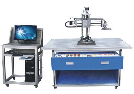 该实训装置为坐标式机械手,可完成机械手旋转、手臂垂直上下、手臂水平移动,手爪旋转四个自由度的位置精确控制。同时配置晶体管式PLC可编程控制器,用于对整个机械手进行复杂地位置控制。该实训装置的控制部分均采用标准式模块设计,可分为电源??椤LC???、系统控制模块。包含了机电一体化专业中所涉及的诸如步进电机驱动、机械传动、气动、可编程控制器、传感器、等多项技术,给学生提供了一个综合实训环境,使学生学过的诸多单科专业知识在这里得到全面认识、综合训练和相互提升。该实训装置主要用于电气、电工电子、自动化控制、机电一体化专业岗位技能实训、考核,是各院校相关专业实训室建设中最佳设备选择之一。