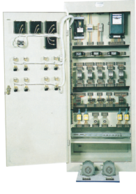 该装置按标准电气控制柜设计制造规格,充分利用双面位置,柜内装有完成各种照明电路所需的单相电度表、日光灯、单联开关、插座、感应开关、漏电开关等,以及电气控制所需要的多种低压电器,如漏电断路器、熔断器、电流互感器、交流接触器、时间继电器、热继电器、中间继电器、行程开关、按钮、信号灯、转换开关、电压表、电流表、功率表及电度表等,为了延长电器使用寿命,各电器的接点都与接线端子相连,再由接线端子与被控制电气连接。
