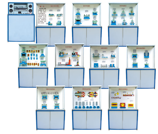 《模具》示教陈列柜,各柜内容如下: