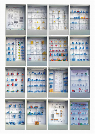 陈列柜尺寸:1250×430×1780mm,机械工程制图陈列柜上下柜整体采用彩色塑钢制作,造型美观,坚固耐用。