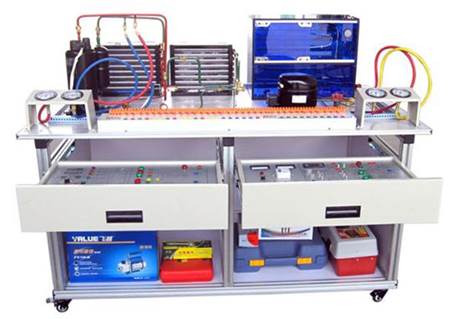 现代制冷与空调系统技能实训装置是专门为职业院校制冷类专业而研制的制冷制热实训设备,根据制冷制热类行业中空调与冰箱维修技术的特点,针对空调和冰箱的电气控制以及制冷系统、电气控制系统、系统调试、故障诊断等特点进行设计。强化了学生对空调冰箱系统管路的安装与维修系统调试等的等的综合职业能力。本装置由空调系统模块,冰箱系统??椋缭醇耙潜砟??,空调电气控制模块,冰箱电子温控电气控制???,冰箱智能温控电气控制??榈茸槌伞Mü璞附邢钅垦盗?,能提高学生的动手操作能力,计划组织能力,制冷系统的调试安装能力,电气控制电路维修能力等是现代制冷制热技能实训的必要工具。
